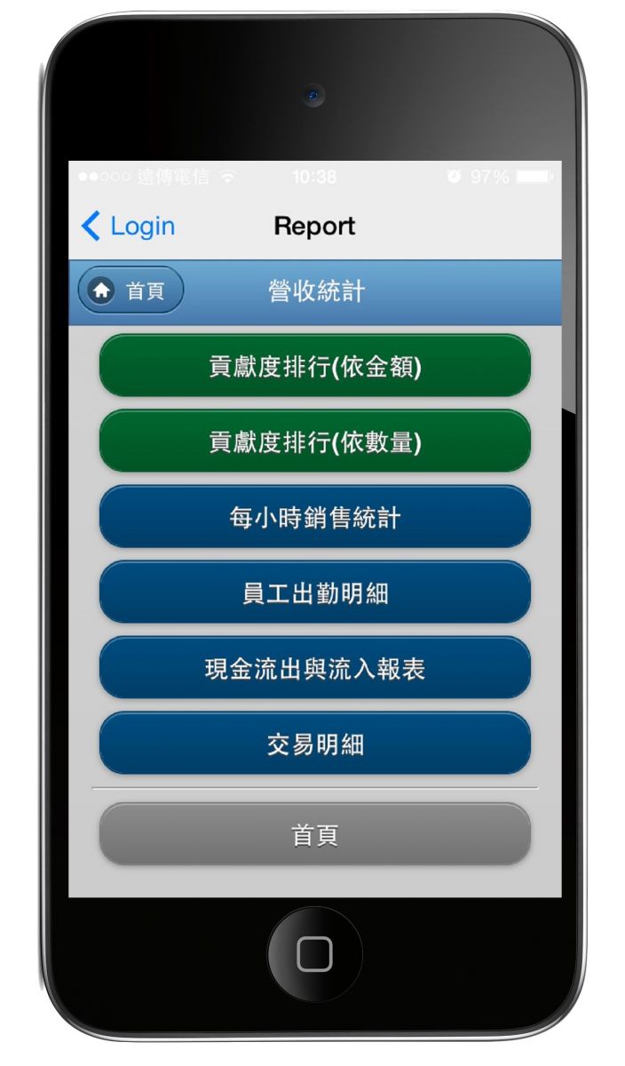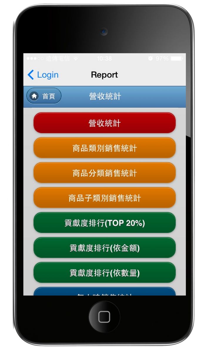 營業統計分析、商品銷售統計、商品分類銷售統計、商品貢獻度排行榜、時段銷售分析、點單交易明細、員工出勤報表…。